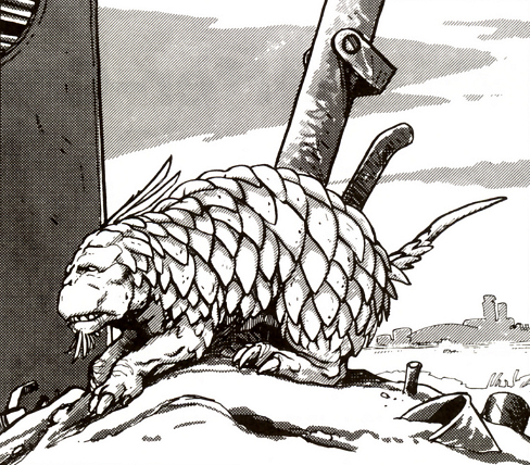 Borcatus are quadrupedal scavenger verminfound amongst garbage and trash on thousands of civilized planets. Up to 0.5-metre (1.6 ft) in length, they are protected from the environment and predators by strong, armored scales.They belong to the armandillo family i guess.I mean look at those scales.Can I have some of it?