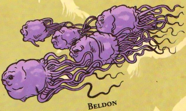 Beldons are colossal floating creatures found in the lower atmosphere of Bespin. They are gas-filled creatures that can metabolize the natural chemicals and biospheric plankton of the slushy gas-liquid-solid interface (via long, trailing, tentacles) of the lower atmosphere. Beldons grow between 800m and 10 km. They travel together in herds.Looks like they belong to the fungi and bacteria group...interesting.