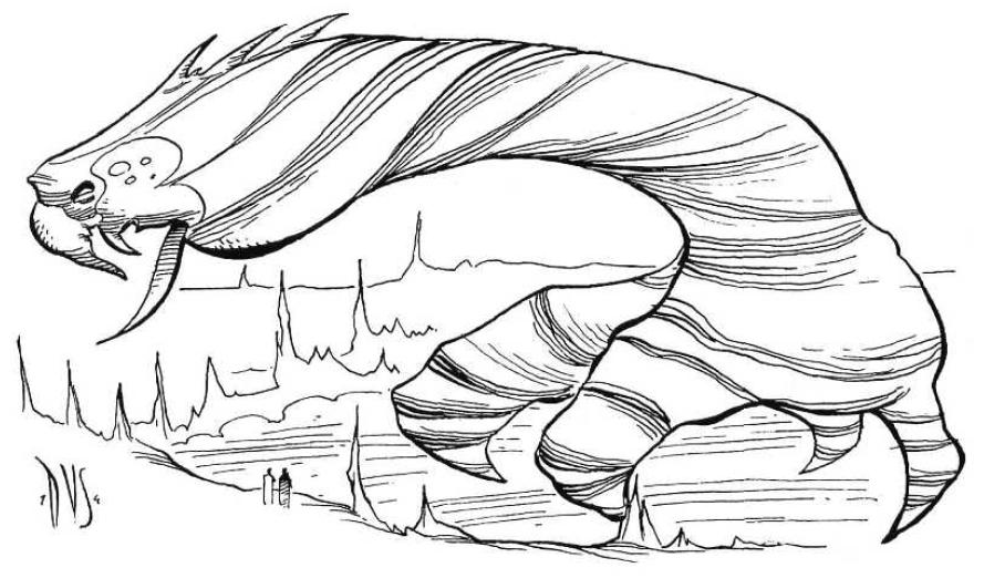 Bergruutfa are large 7m tall herbivorous grazers from the planet Teloc Ol-sen. They have been known to serve as caravan beasts, warbeasts and farm animals, and have an armored frill around their head.Oh my those feet are so strong.